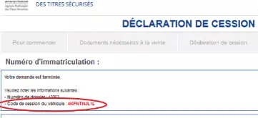 La déclaration de cession en ligne : Le vendeur doit enregistrer la vente sur internet. Cette démarche génère un code de cession, indispensable à l'acquéreur pour demander sa nouvelle carte grise.